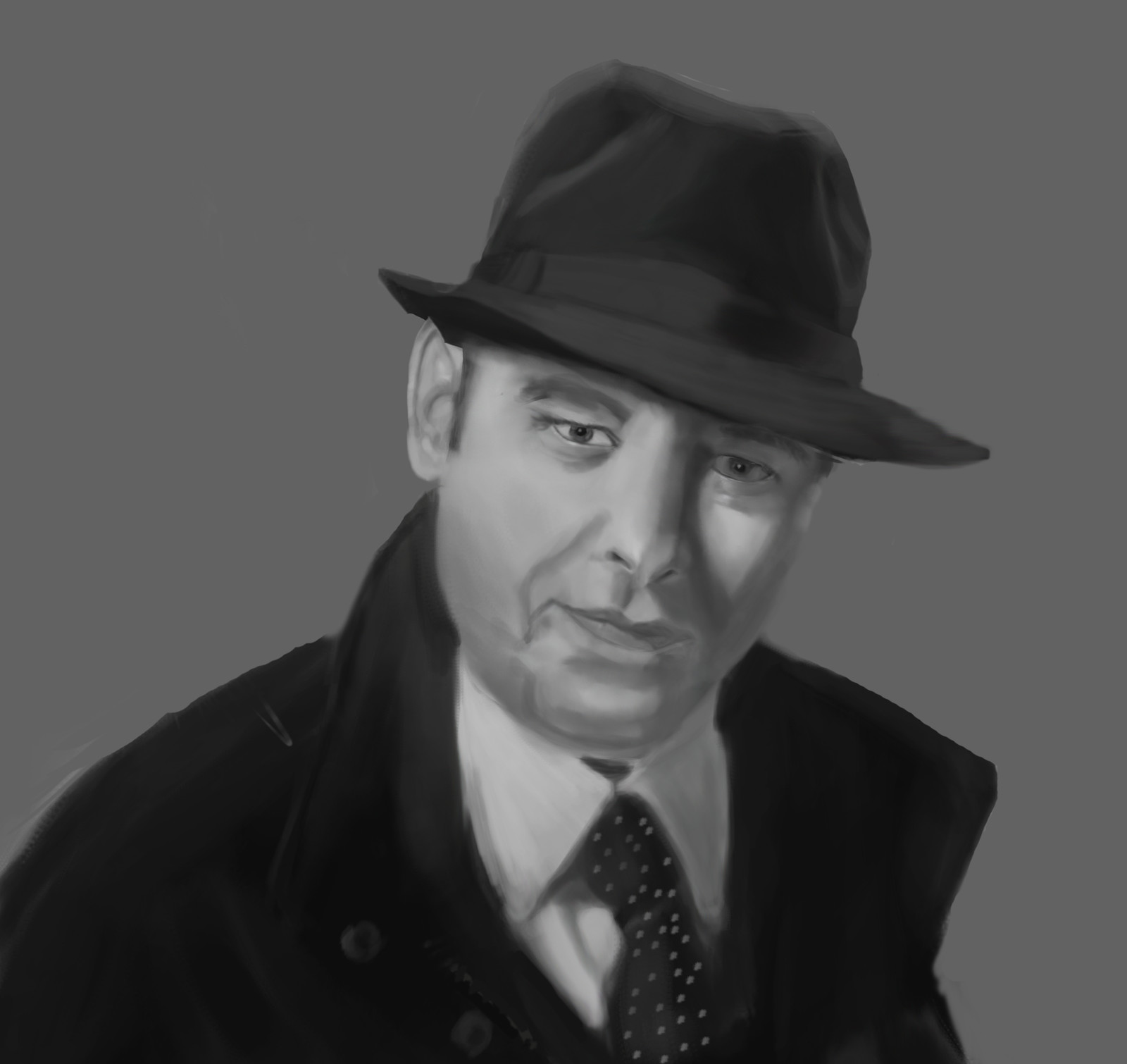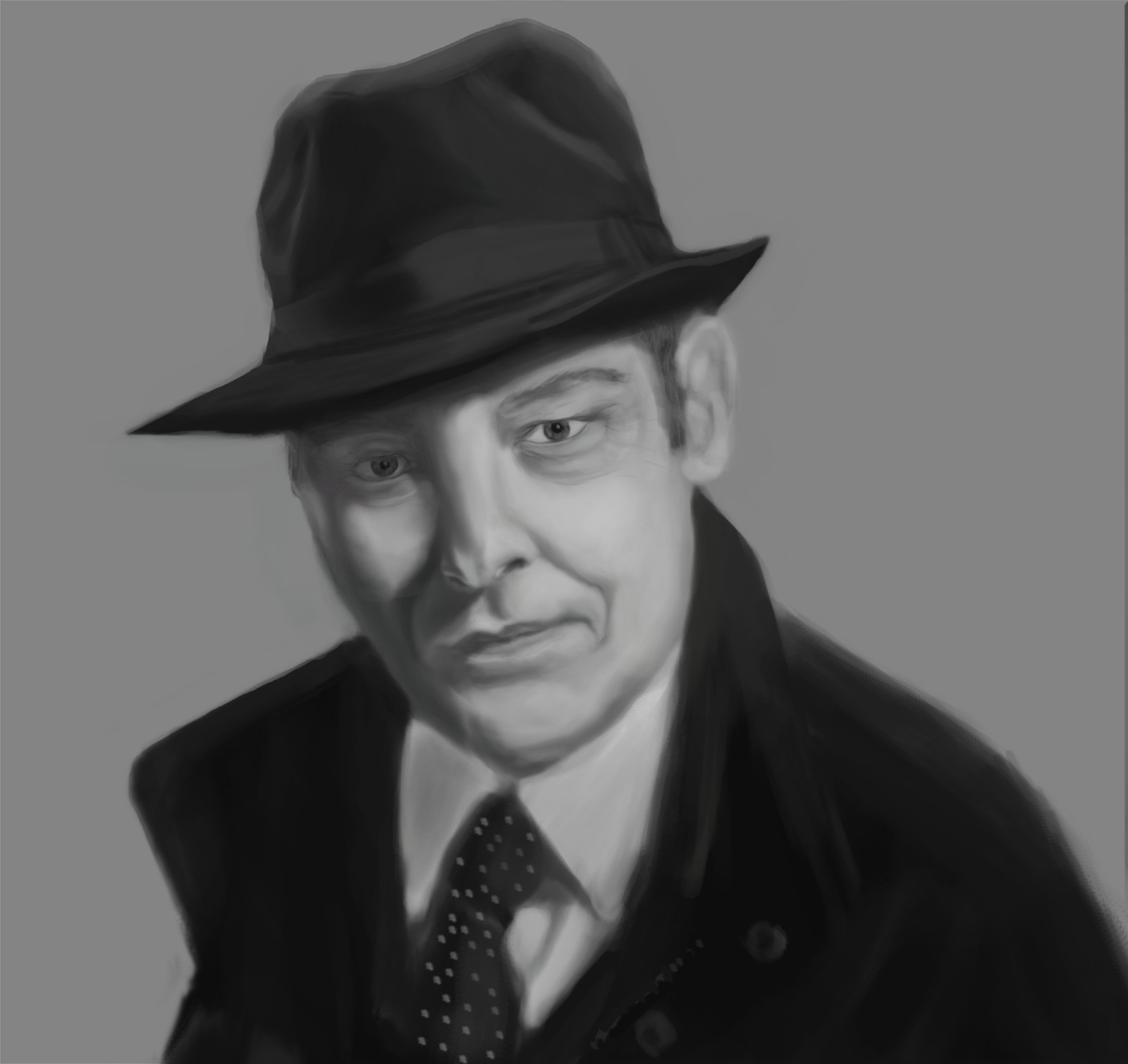 Mistakes ; I started without studying the face height map and without measurement. I found many faces but not the shapes that I wanted to reach. I like the photo lighting and the mood makes me remember Mafia the game. Hollywood police genre used in the 30's cinematography direct spot light with darkened shadows. This one is modern with soft lights. (Raymond Reddington from black list serial)