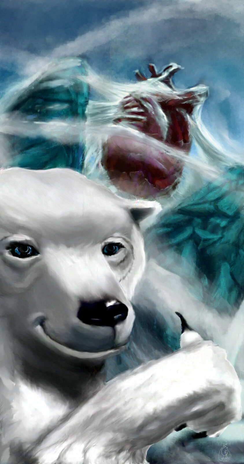 A Selfy the bear took when passing by that red thing over there from a quick rough 2D animation project you can find on my portfolio made on Blender.